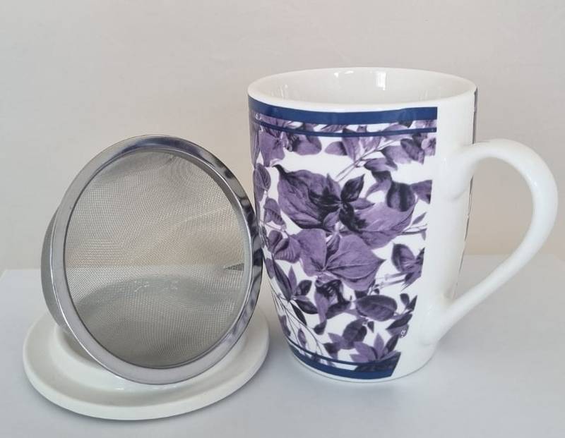 Caneca de chá de porcelana 310 ml com infusor e tampa
